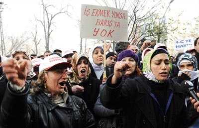 Quelques 10 000 personnes, travailleurs/euses, membres de leurs familles et supporters manifestent actuellement à Ankara par des températures proches du 0° afin de protester contre une décision prise en hâte par le gouvernement de fermer leurs lieux de travail à la fin de janvier 2010.